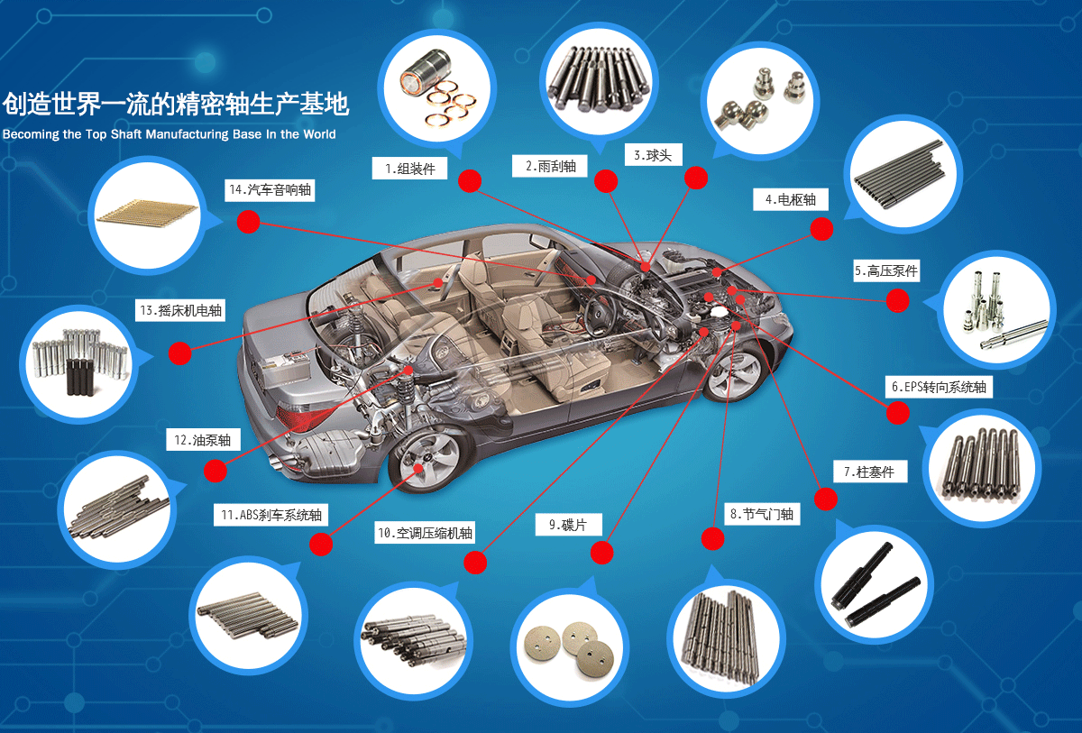 公司著眼于發展、創新,每年均投入大量人力和物力進行新產品研發及技術改造,當前公司產品包括各類汽車軸、精密馬達軸、工業零部件等近20個系列千余產品,遠銷世界各地,深受客戶信賴。